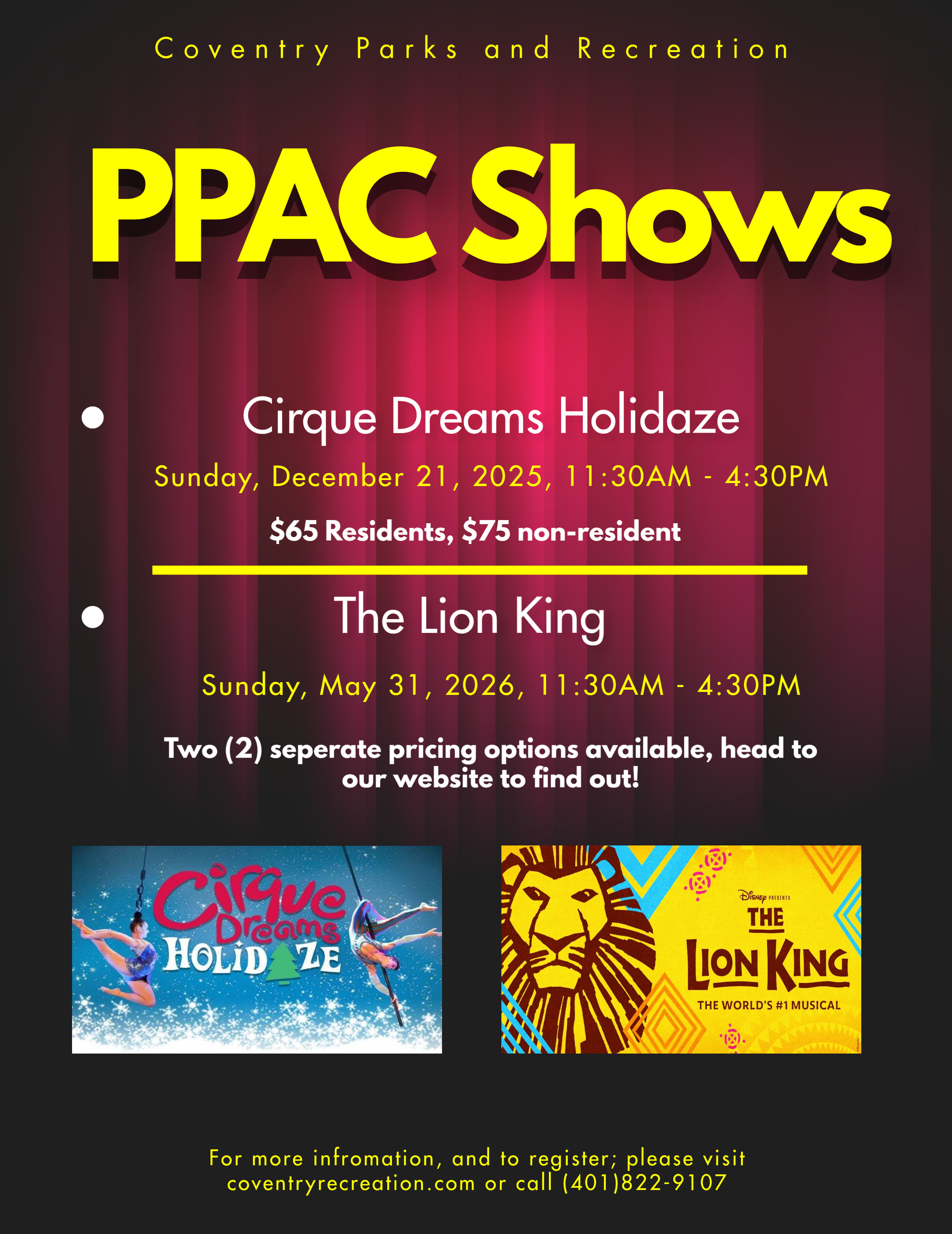 MissionDevelop and preserve an outstanding system of facilities, parks, and recreational programs for the Town of Coventry.